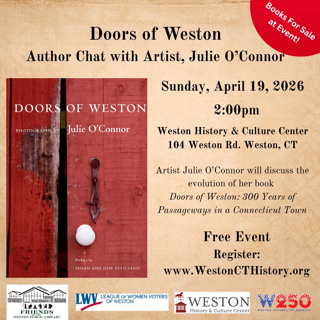 Julie spoke about her book Doors of Weston, published in 2008, at the Weston History & Culture Center on April 19th, 2026.