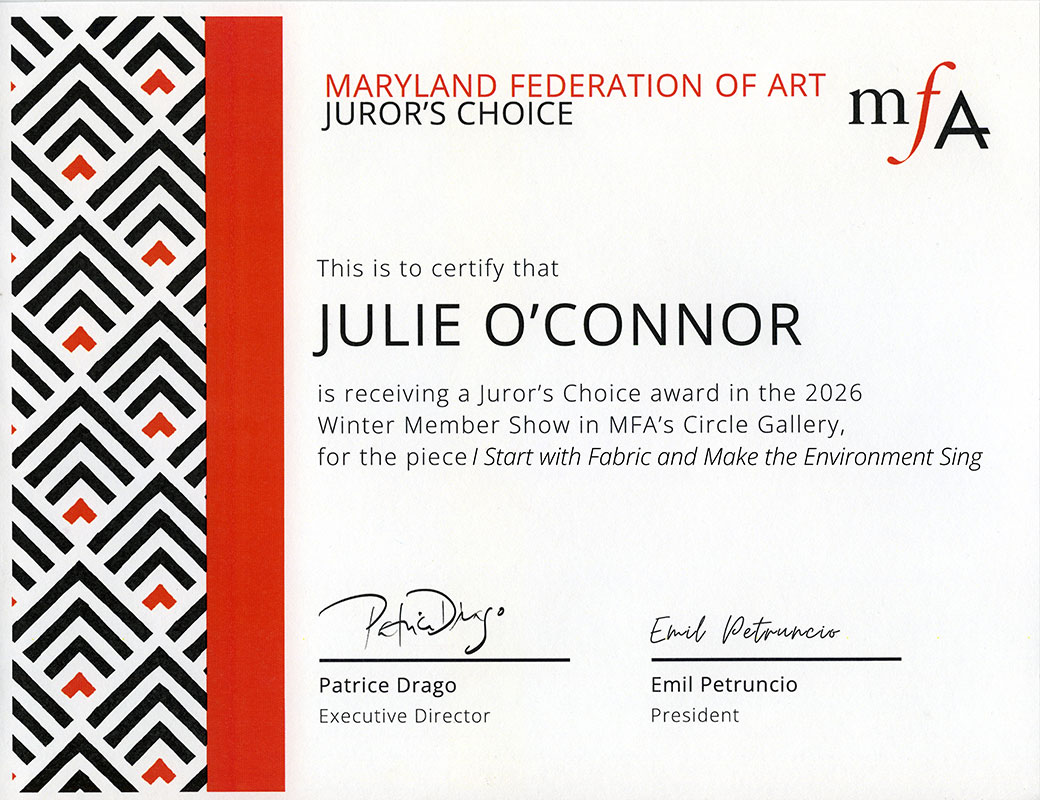 Julie's photograph I Start with Fabric and Make the Environment Sing was selected for this show by juror Megan Rook-Koepsel.