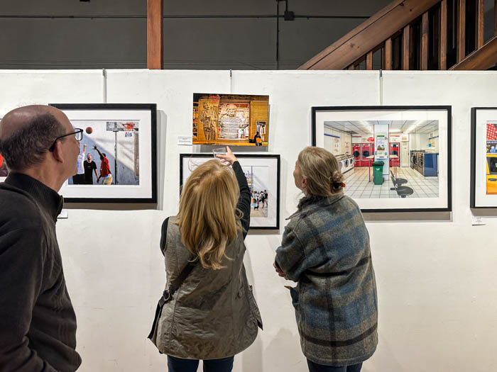 Several attendees look at 3 Icons of the 20th Century
