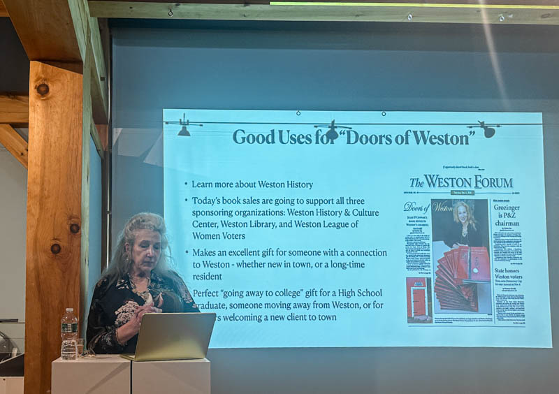 Julie spoke about her book Doors of Weston, published in 2008, at the Weston History & Culture Center on April 19th, 2026.