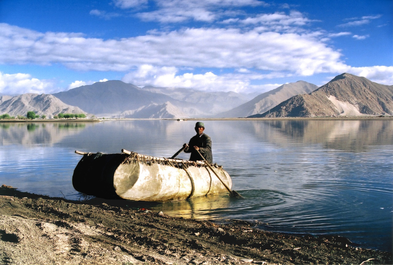 Tibetan Man in a Coracle