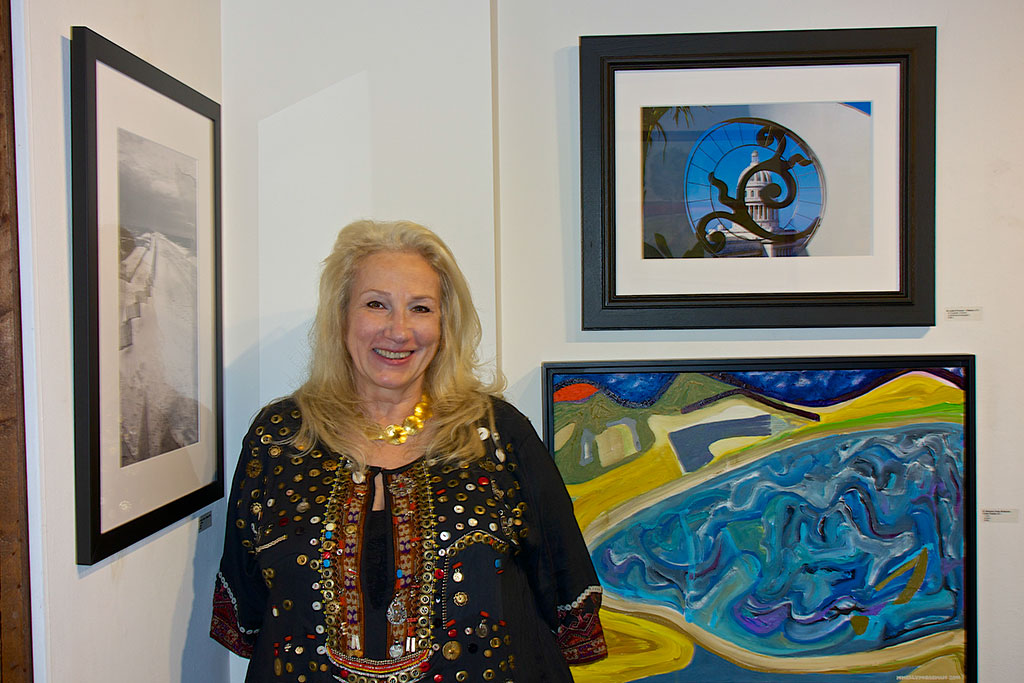 Enjoying the art show- Julie's piece Trinidad, Cuba (lower right)